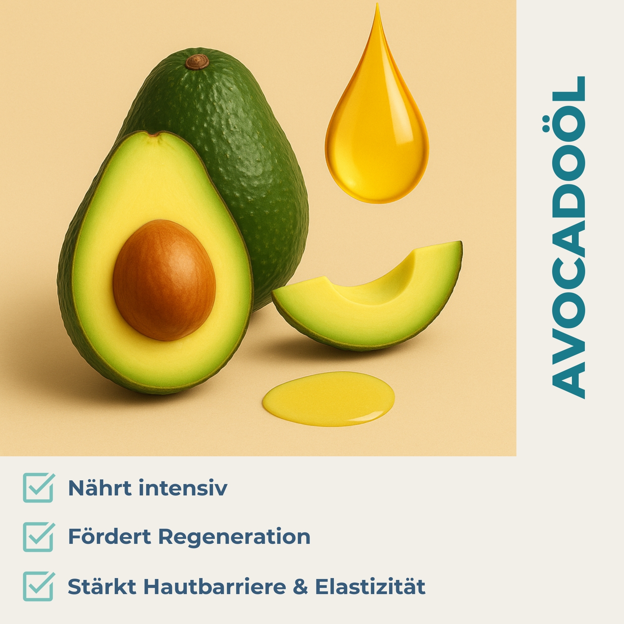 ✔ Pflegt mit Avocadoöl, Mandelöl & Sheabutter