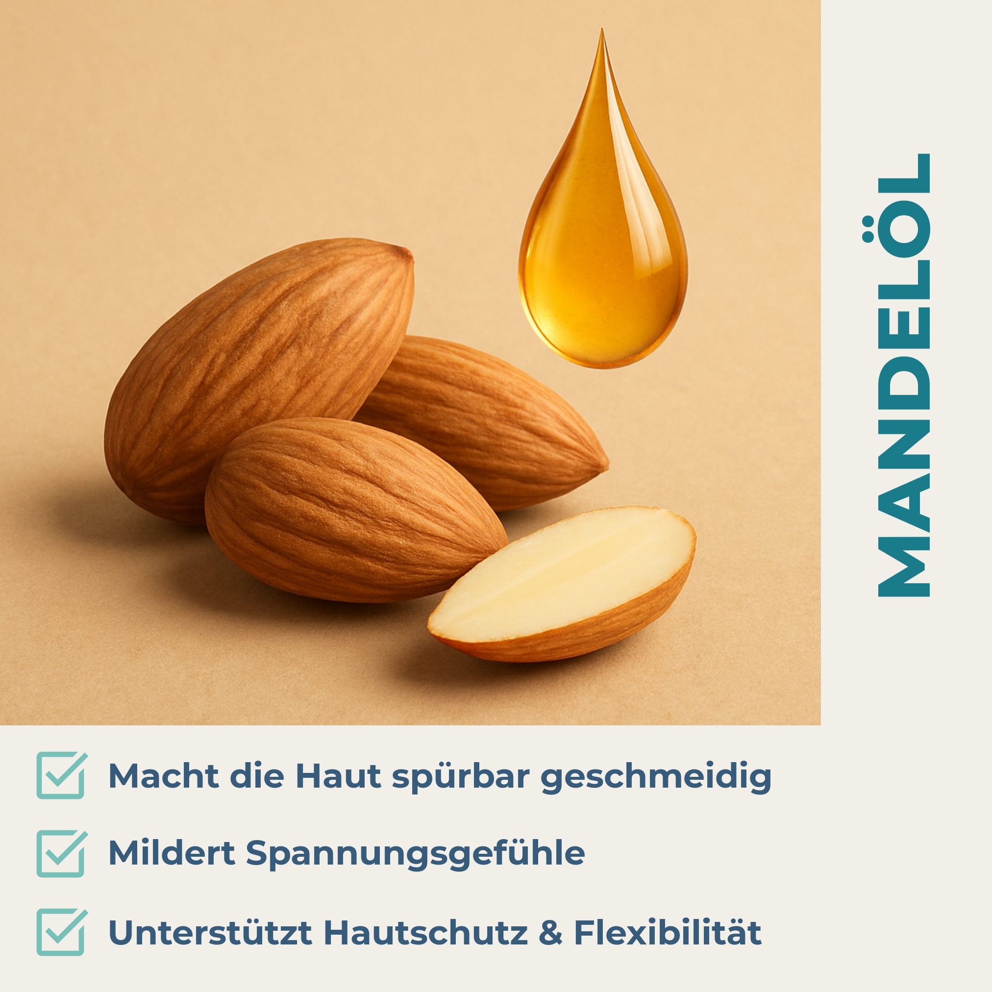 - Süßmandelöl & Avocadoöl: Pflegen, machen weich und geschmeidig.