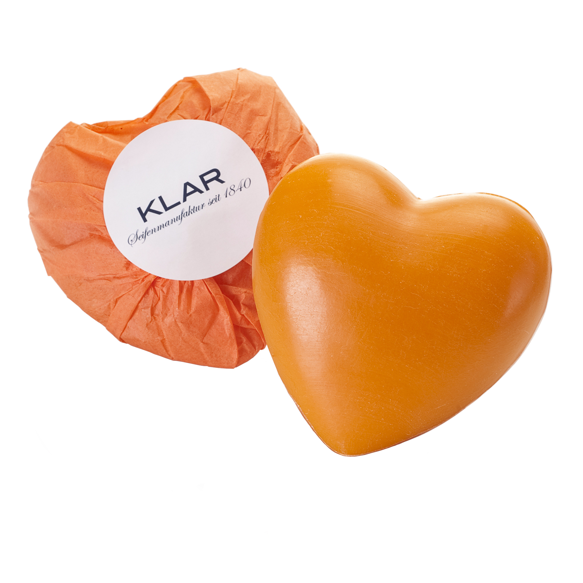 Klar´s Herzseife Orange ist mit naturreinem ätherischen Orangenöl veredelt. Das rein pflanzliche Öl pflegt die Haut mit einem sahnigen Schaum und macht Händewaschen zu einem fruchtigen Erlebnis.