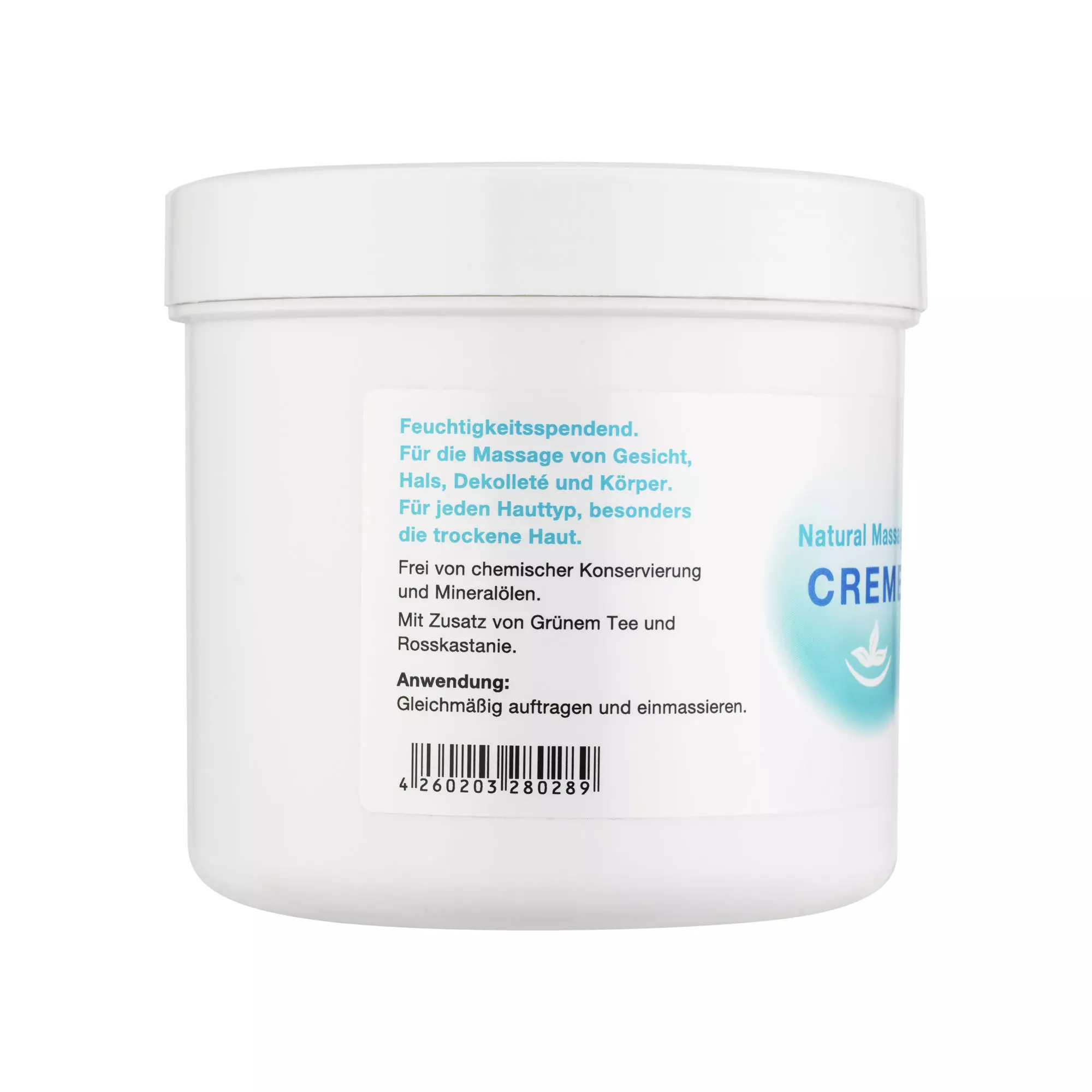 Die Natural Massage Creme wurde speziell für entspannende Körpermassagen entwickelt und spendet der Haut intensive Feuchtigkeit. Die Kombination aus Grünem Tee und Rosskastanienextrakt unterstützt die Hautdurchblutung und wirkt wohltuend auf beanspruchte Hautpartien. Die reichhaltige Textur sorgt für eine angenehme Gleitfähigkeit und ein geschmeidiges Hautgefühl.